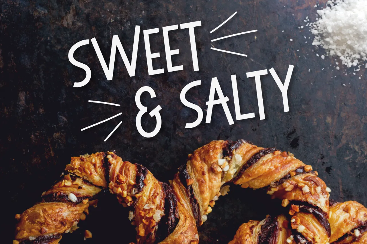 Sweet & Salty is a quirky, fun sans serif typeface with a bouncy baseline—use it to add play to logos, posters, craft projects, food packaging, bold headlines, and more.